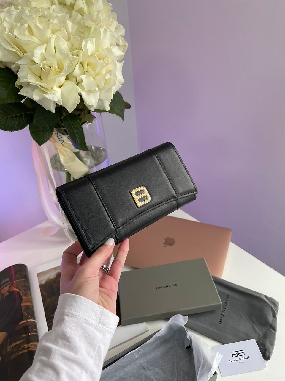 Розмір 19x10x3смГаманець виконаний з гладкої шкіри з фірмовим металевим лого.Всередині два великих відділення та одне на застібці для дрібниць.Підкладка з чорної шкіри.Також 12 відділень для карток.Металева фурнітура якісна та брендована.Зачиняється гаманець на двух кнопках.Комплектується у брендову коробку та пильовик.