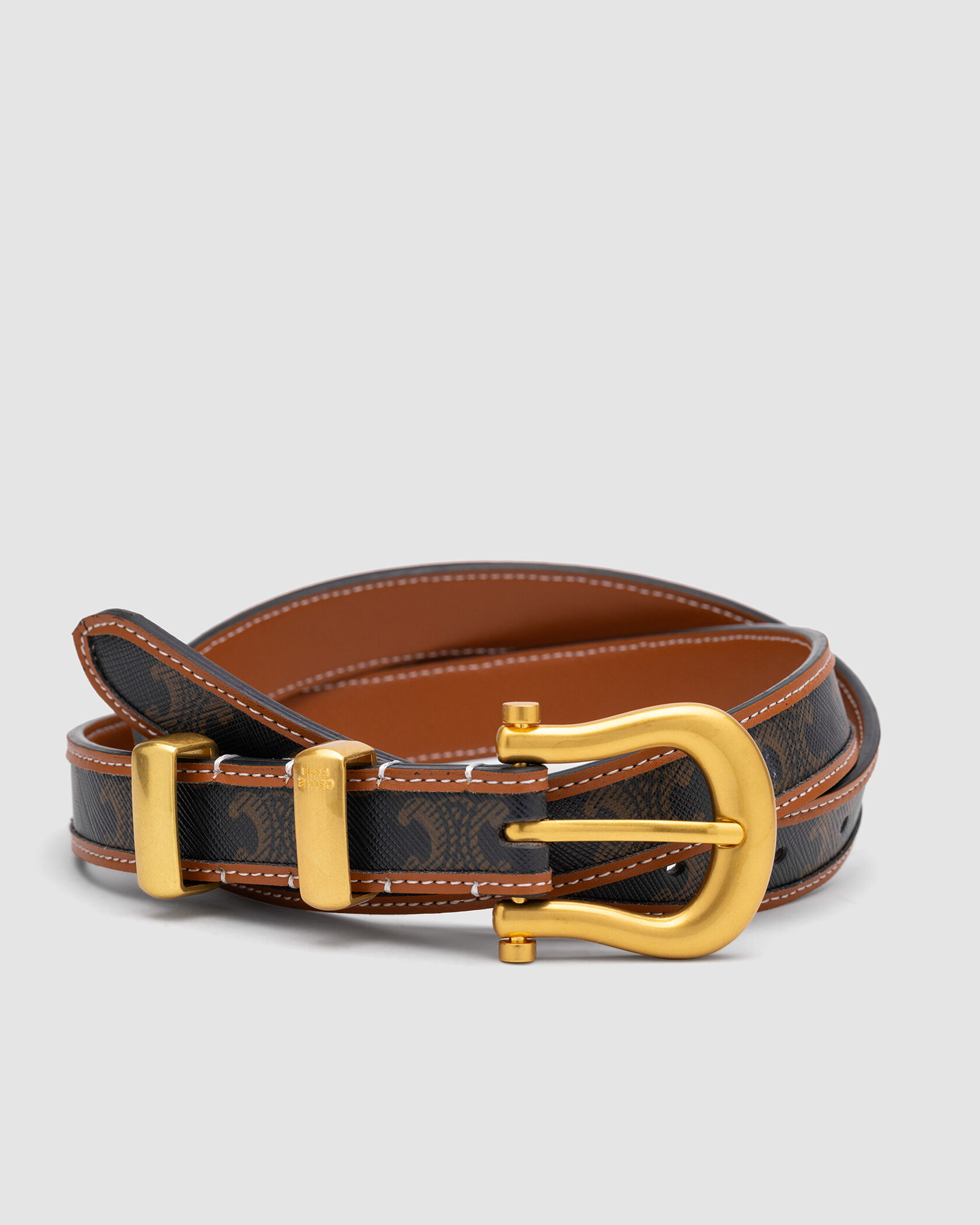 Celine Western Belt in Triomphe Canvas and Calfskin / Gold