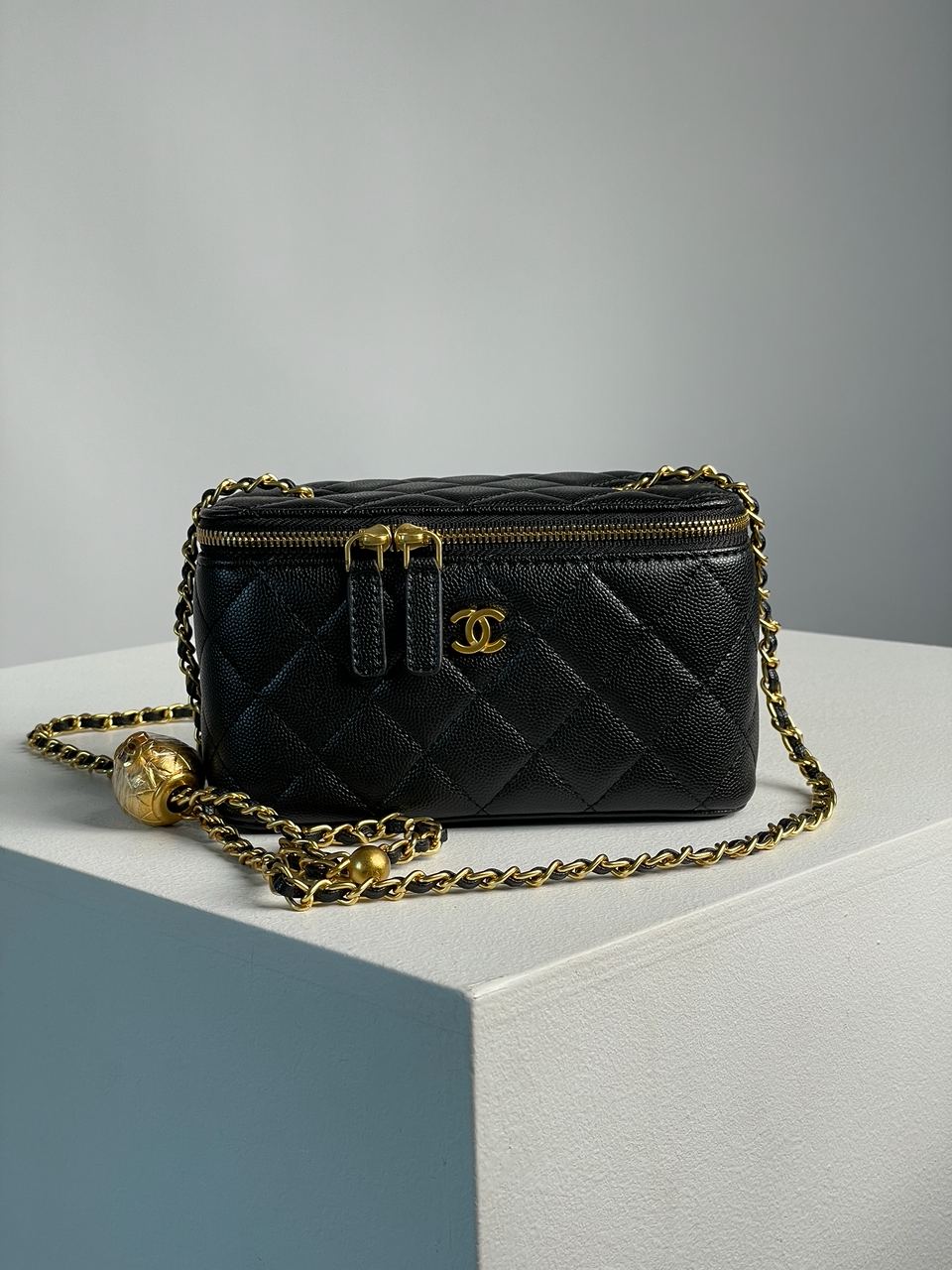 Розмір 17x11x8смСумка виготовлена з зернистої шкіри, прострочена.Всередині одне невеличке відділення, є ще більш невеличка кишеня.Підкладка з щільного текстилю.Для носіння через плече є довгий тоненький ланцюжок з вплетеною шкірою (не відстібається, регулюється по довжині завдяки оригінальному механізму).Комплектується у фірмовій коробці на магнітах, пильовику.Також є брендова стрічка для подарункового пакування, об’ємна квіточка котра закріплюється на коробку, листівку та конверт з подякою за вибір бренду, особисту пластикову картку.