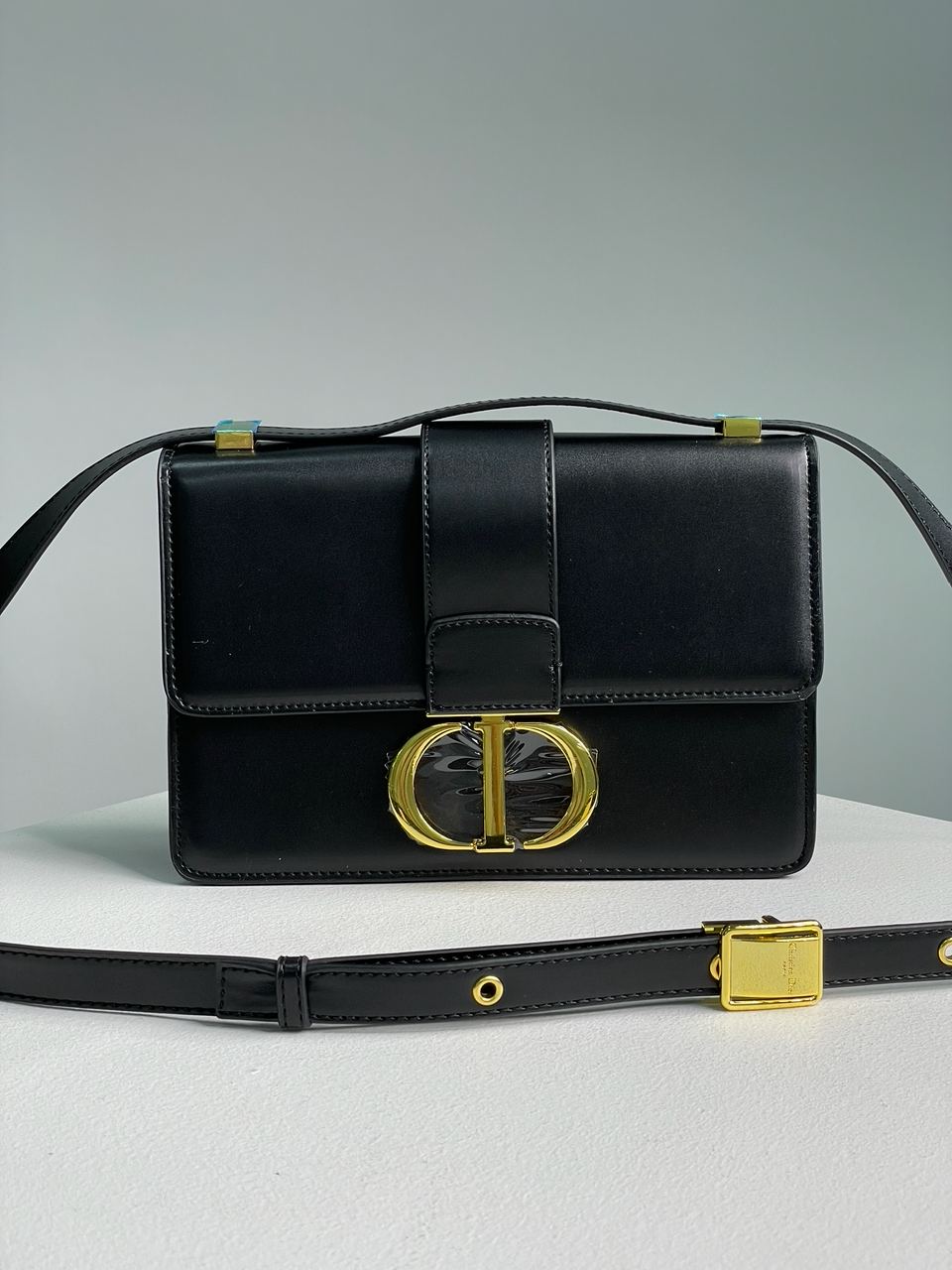 Розмір 24х16х7смСумка виготовлена з гладкої шкіри чорного кольору.Всередині одне відділення, є маленька кишеня на застібці з брендовим шкіряним маркуванням.На задній стінці також є невеличка кишеня (під тисненням «30 Montaigne»).Підкладка у сумки з чорної еко шкіри.Закривається сумка на скритому механізмі, для відкриття потрібно натиснути під буквою «I».Фурнітура металева з золотим покриттям, брендована.Ремінець вузький, шкіряний, має регулюєму довжину. Комплектується у брендованій коробці та пильовику.