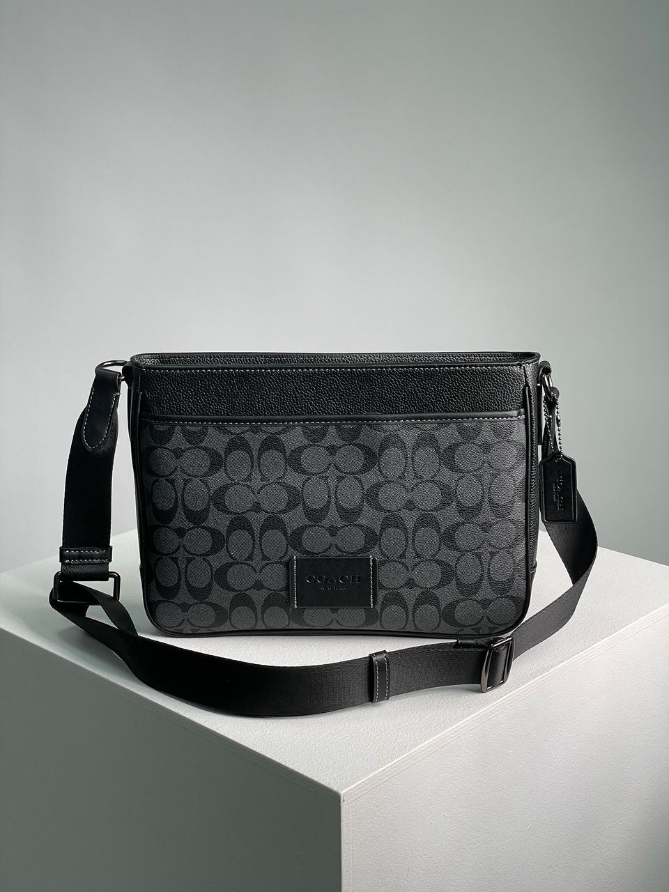 Розмір 31х22х6.5смСумка виконана з гладкої шкіри з фірмовою канвою.Всередині одне велике відділення, також є дві кишені одна з яких на застібці.Головне відділення зачиняється на застібці, також на лицьовій поверхні є кишеня.Підкладка з щільного та якісного текстилю чорного кольору, є шкіряна нашивка з брендовим тисненням та бірка.Фурнітура дуже якісна, металева та брендована.Ремінець з щільного текстилю чорного кольору, має регулюєму довжину.Комплектується в брендову коробку та пильовик.