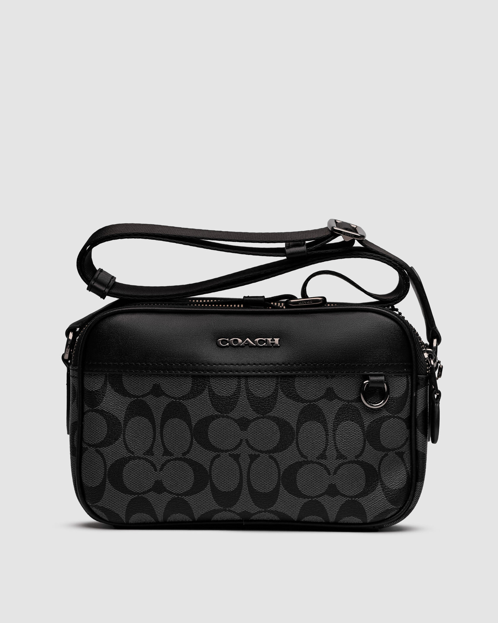Розмір 23х15х7смСумка виконана з гладкої шкіри з фірмовою канвою.Всередині одне відділення, також є невеличка кишеня.Підкладка з щільного та якісного текстилю, є шкіряна нашивка з брендовим тисненням та бірка.Фурнітура дуже якісна, металева та брендована.Ремінець з щільного текстилю чорного кольору, має регулюєму довжину.Комплектується в брендову коробку та пильовик.