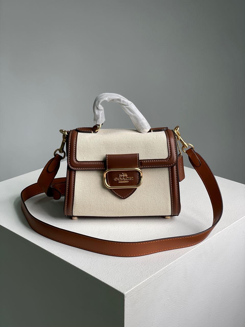 Розмір 22х16х10смСумка виготовлена з щільного текстилю та натуральної шкіри.Усередині одне відділення, також є дві кишені одна з яких на застібці.Підкладка з приємного на дотик текстилю, з шкіряною нашивкою.Зачиняється на магніті-клапані.Фурнітура металева-брендована.Ремінець з натуральної шкіри, на карабінах, має регульовану довжину.Комплектується у брендованій коробці та пильовику, також є брендовий пакетик, бірки.