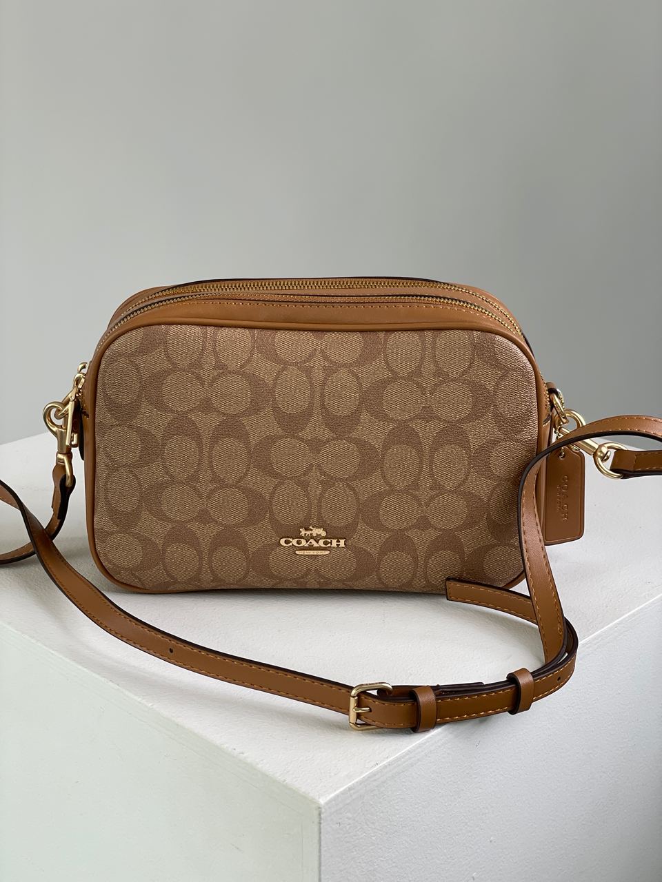 Розмір 24x15x8смСумка виготовлена з якісної шкіри з фірмовою канвою.Усередині два відділення на застібках, також є невеличка кишеня.Підкладка всередині з щільного та якісного текстилю.Фурнітура дуже якісна, металева та брендована.Вузький ремінець на карабінах має регульовану довжину.Комплектується у брендованій коробці на магнітах та пильовику, також є брендовий пакетик, бірки.