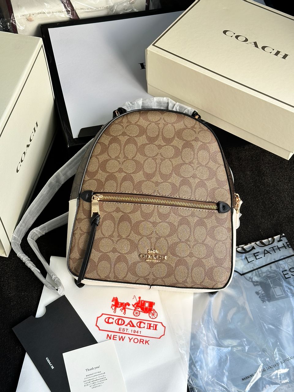 Розмір 24x28x10смРюкзак виготовлений з якісної шкіри з фірмовою канвою.Має два відділення, одне велике - головне, інше меншого розміру (зовні), також є додаткова кишеня на застібці.Підкладка всередині з щільного та якісного текстилю.Фурнітура дуже якісна, металева та брендована.Ремінці шкіряні, мають невеличкий діапазон регулювання.