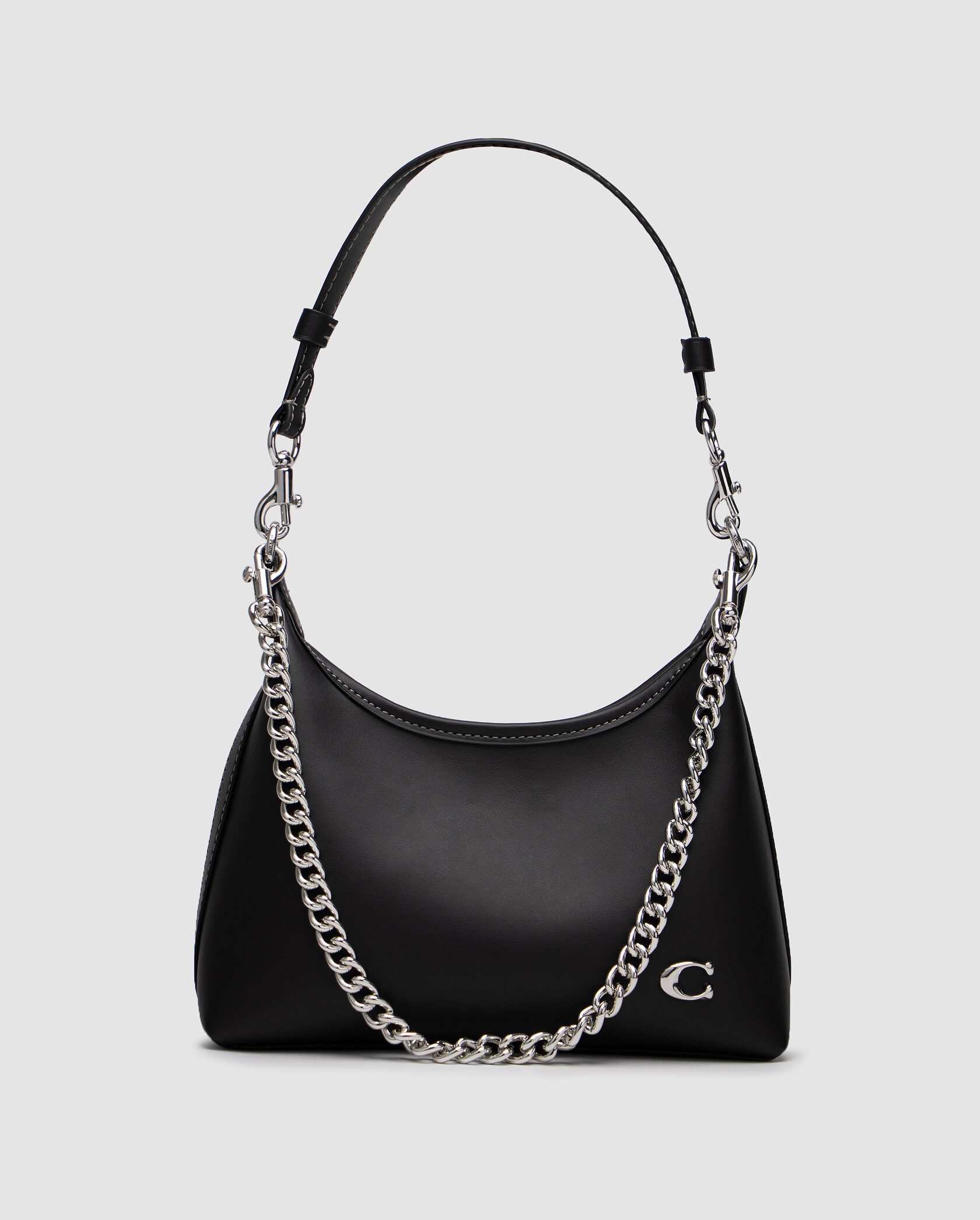 Розмір 25х15х9смСумка виготовлена з гладкої та м’якої шкіри.Всередині одне відділення, також є невеличка кишеня на заклепці.Підкладка з щільного текстилю, має шкіряну нашивку з фірмовим тисненням.Зачиняється відділення на застібці.Фурнітура металева, брендована.В комплекті шкіряна ручка для носіння у руці та шкіряний ремінець для носіння через плече (регулюється за довжиною та пристібається на карабінах).Металевий ланцюжок виконує декоративну функцію, але також можна використовувати замість ручки.Комплектується у фірмовій коробці та пильовику.