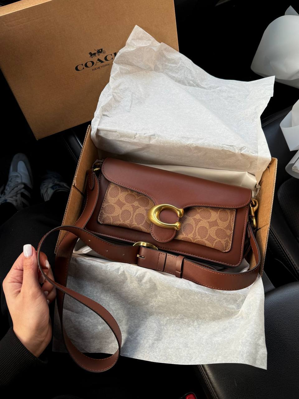 Розмір 26х14х7смМатеріал : шкіраТри відділи, маленька кишеняЛого всередині, лого на фурнітурі я В комплекті:Крафтова коробка, пильник,пакувальний папір, печиво зпередбаченням