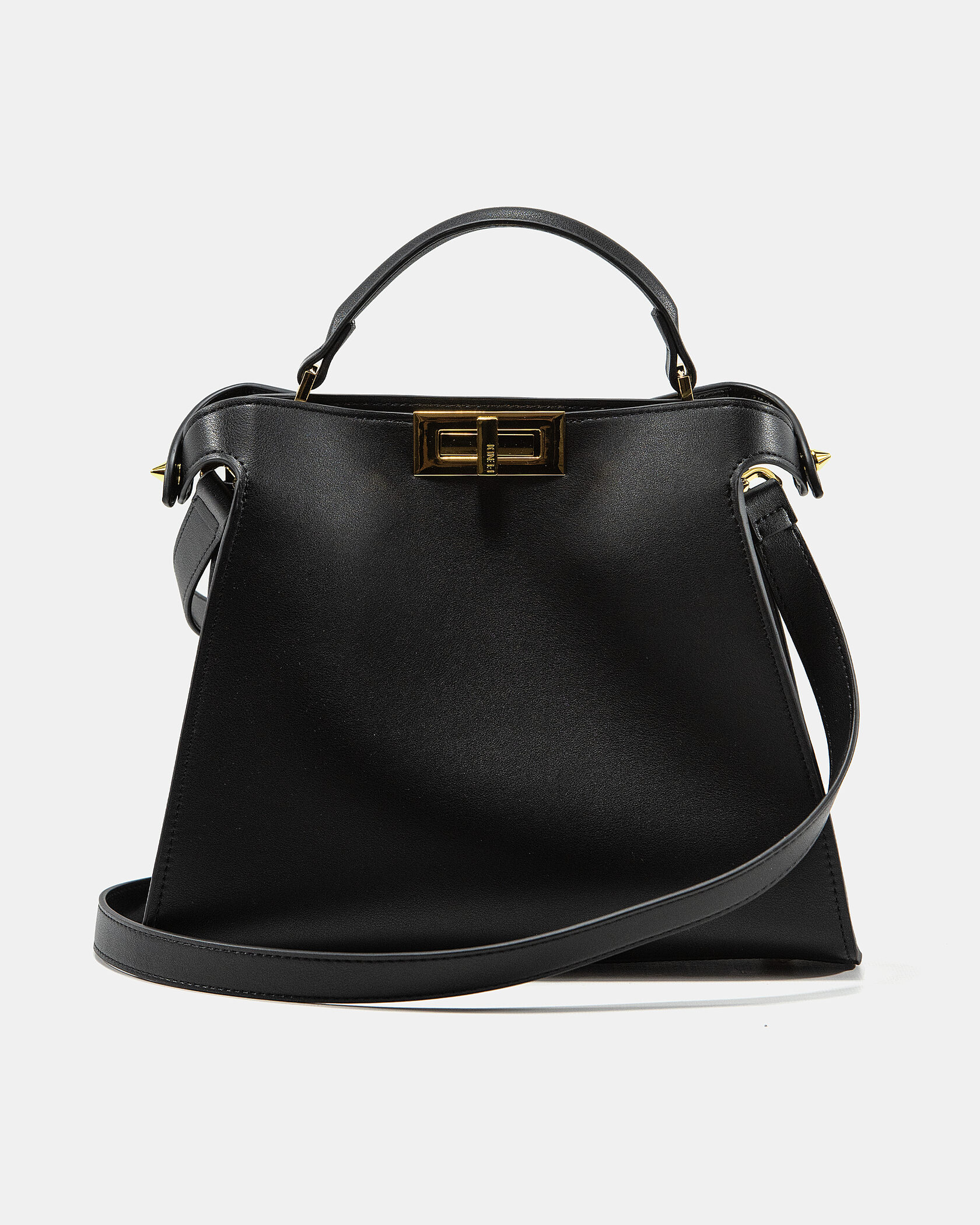 Розмір 29x23x13смМатеріал: ШкіраФурнітура: Золота, брендована застібкаЛоготип: Дизайнерська фурнітура з фірмовим елементом FendiРемінець: Знімний плечовий + верхня ручка для носіння в руціВідділення: Одне основнеЗакриття: Класична фірмова застібка “твіст”Стиль: Вишукана та впізнавана модель Fendi Peekaboo – символ елегантності та статусу. Ідеальна як для щоденного образу, так і для ділових зустрічей.