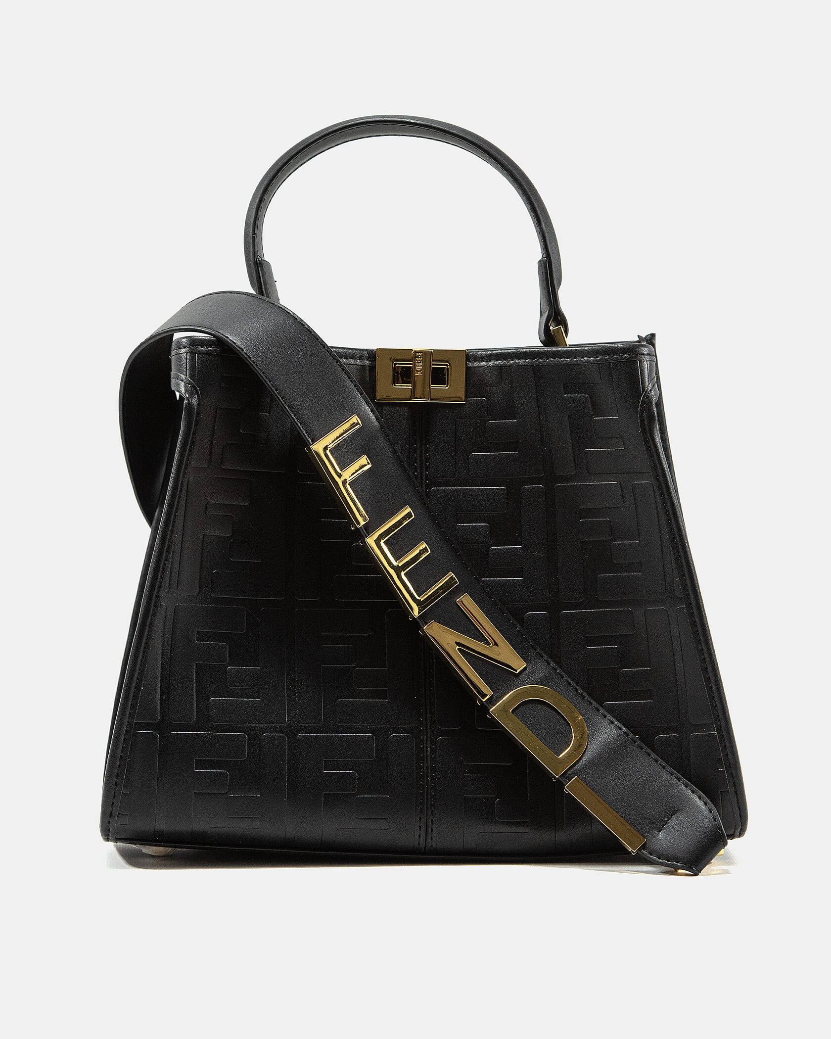 Розмір 29х24х11смМатеріал: ШкіраФурнітура: ЗолотаЛоготип: Тиснений фірмовий монограмний візерунок FFРемінець: Широкий брендований текстильний ремінь Fendi, знімнийРучки: Жорсткі шкіряні, для носіння в руці або на передпліччіВідділення: Одне основнеЗакриття: На замок Стиль: Стильна та містка сумка від Fendi — ідеальний вибір для ділового образу або повсякденного використання з акцентом на преміум-деталі та комфорт.