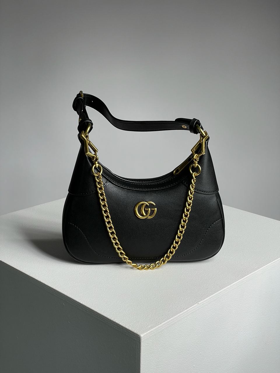 Розмір 25x13x7смСумка виготовлена з гладкої шкіри чорного кольору.Всередині одне відділення, є дві невеликі кишені.Підкладка з щільного та якісного текстилю.Зачиняється відділення на застібці.Якісна фурнітура, металева та брендована.Сріблястий ланцюжок на карабінах для носіння у руці та через плече.Комплектується в брендованій коробці, сумка пакується в пильовик.