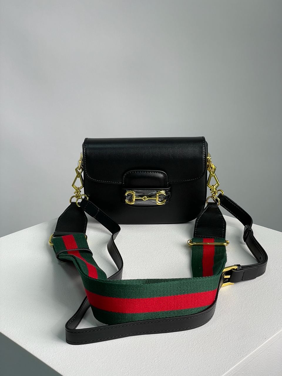 Розмір 20.5х15х5смСумка виготовлена з гладкої шкіри.Всередині одне відділення, додаткової кишені немає.Підкладка у сумки з щільного та якісного текстилю, світла.Основний ремінець з шкіри, вузький, має невеличкий діапазон регулювання.Також є додатковий ремінець з щільного зелено-червоного текстилю, регулюється.Фурнітура металева, брендована.Комплектується в захисній транспортній коробці а також у фірмовій зеленій коробці на магнітах, пильовику, також є хустинка та стрічка для подарункового пакування.