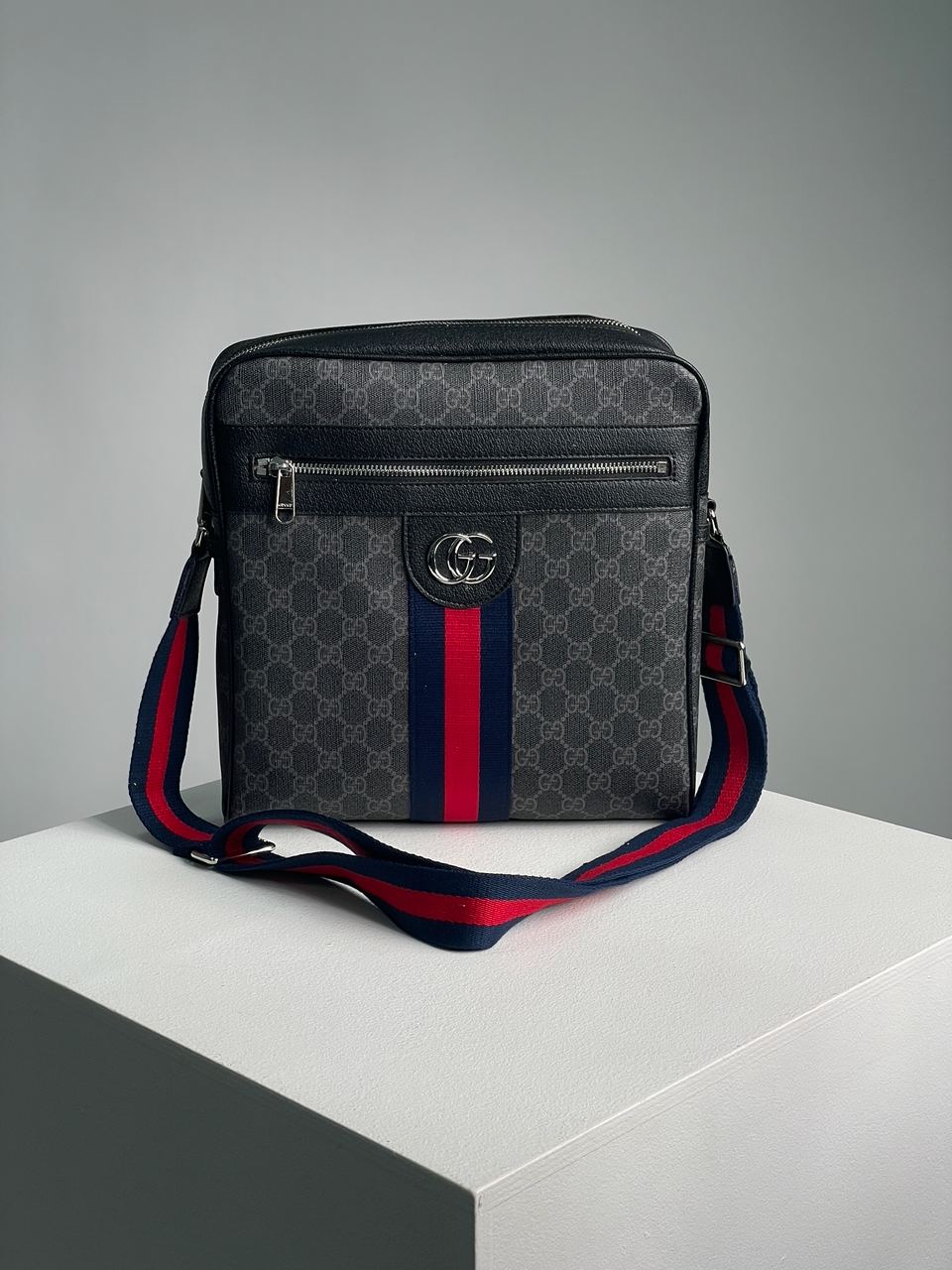 Розмір 28х28х8смСумка виконана з гладкої шкіри з фірмовою канвою.Всередині одне велике відділення, також є кишеня на застібці і без.Зовні на лицьовій стороні є ще одне відділення на застібці.Підкладка з щільного та якісного текстилю.Фурнітура дуже якісна, металева та брендована.Ремінець з щільного текстилю в фірмових кольорах, має регулюєму довжину.Комплектується в брендову коробку та пильовик.
