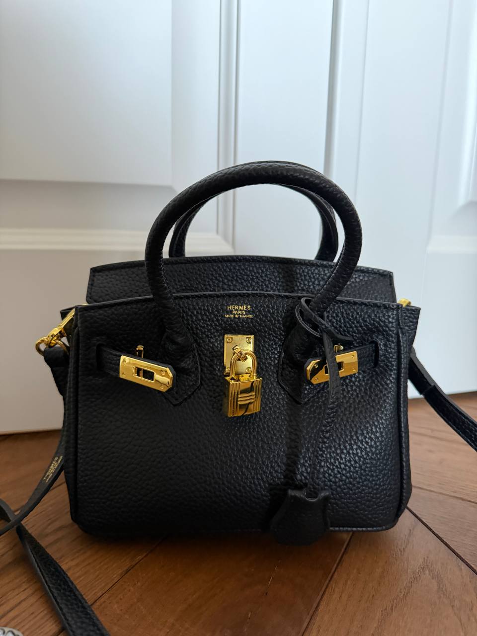 Розмір 20x17х12смМатеріал : шкіраОдин відділ, маленька кишеняЛого на фурнітурі та ремінціВ комплекті: магнітна коробка, пильник, пакувальний папір