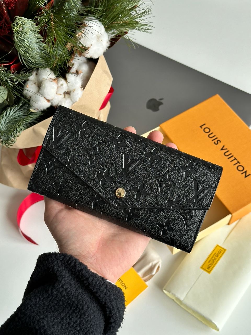 Розмір 20х9x2смГаманець виконаний з текстурної шкіри з фірмовою канвою.Всередині два великих відділення та одне на застібці для дрібниць.Підкладка шкіряна, чорного кольору, з брендуванням.Також 8 відділень для карток.Металева фурнітура якісна та брендована.Комплектується у брендову коробку та пильовик, також є пластикова картка бренду та буклетик.