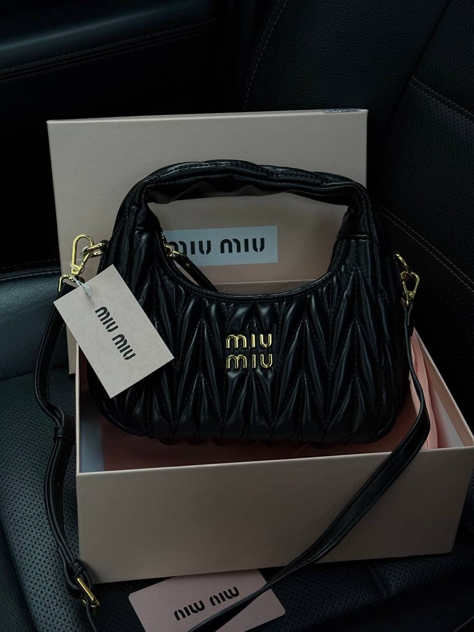 Розмір 21х23х7 смМатеріал: шкіраОдин відділ, маленька кишеняМеталеве лого всередині Довгий ремінець 95 см максимальна довжина (регулюється)В комплекті: оригінальна коробка miu miu, пакувальний папір, пильник фірмовий