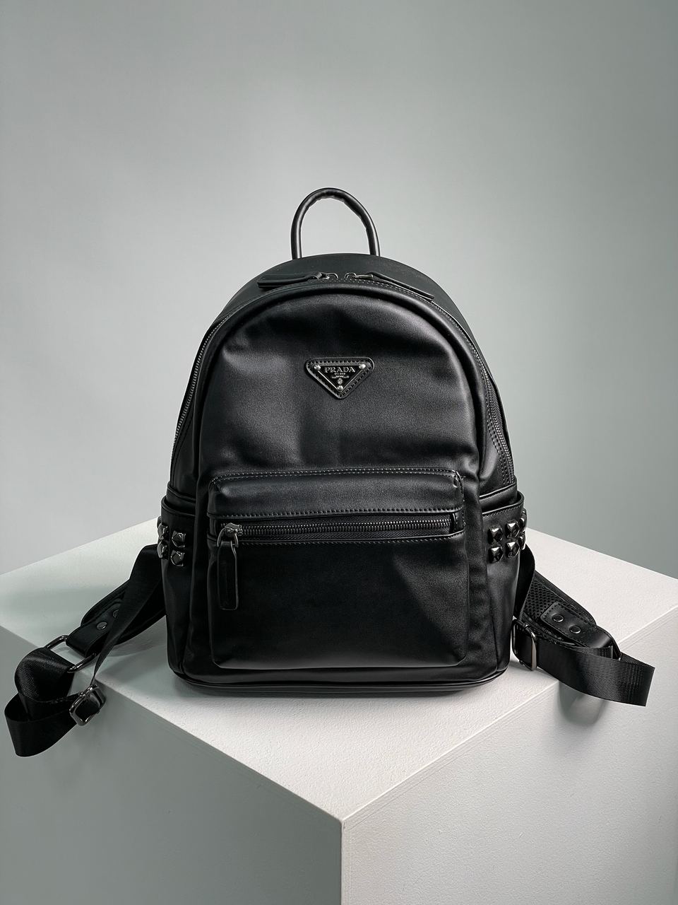 Розмір 22х30х10смРюкзак виконаний з гладкої шкіри, з металевими елементами.Всередині одне велике відділення, також є дві кишені.Зовні є невеличка кишеня на застібці.Підкладка у рюкзака з щільного текстилю.Фурнітура металева та брендована.