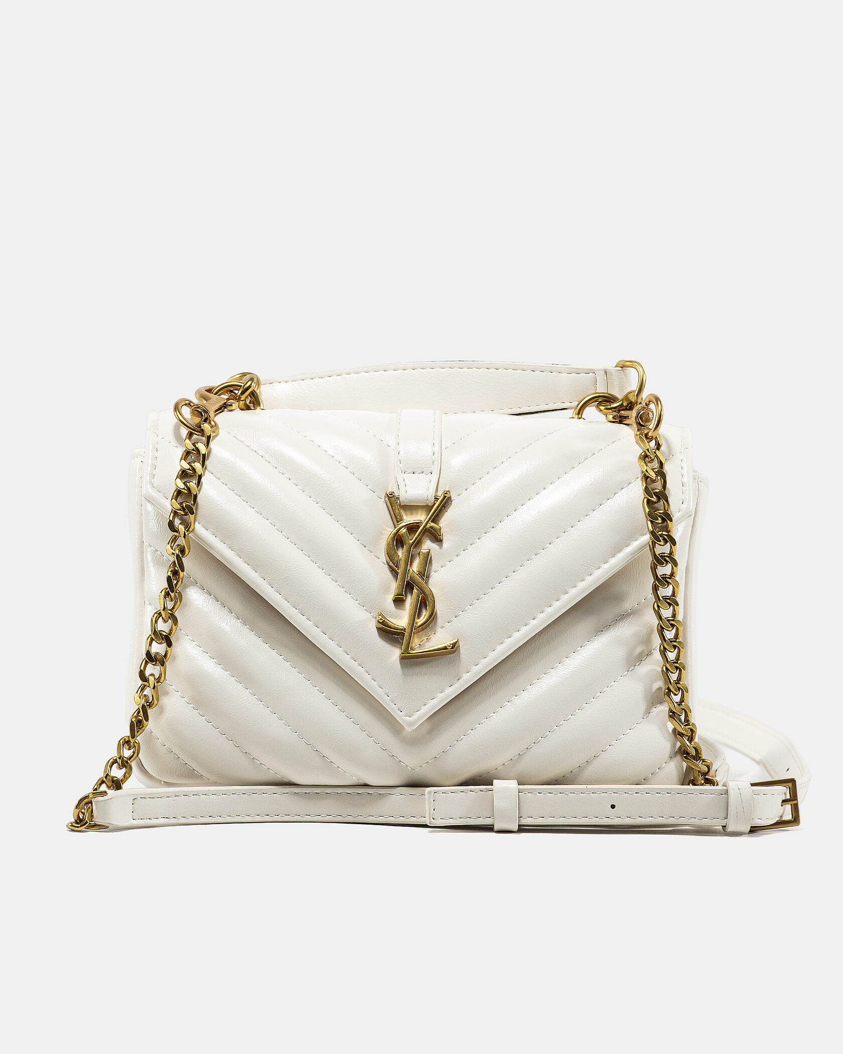 Розмір 20x13x4смМатеріал: Шкіра.Фурнітура: Золота.Особливості: Стильна компактна сумка з ефектною стьобаною текстурою, фірмовим логотипом YSL і ланцюжком. Ідеальний варіант для вечірніх виходів або доповнення елегантного образу.