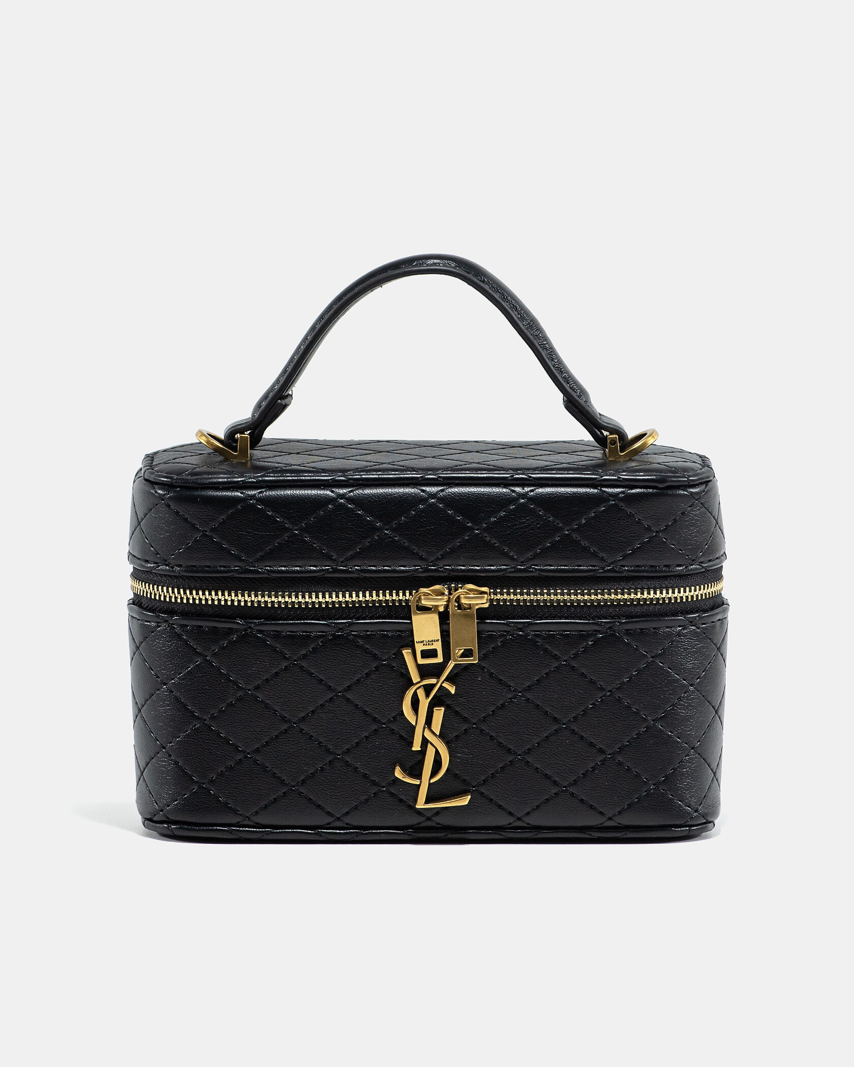 Розмір 19x12x5cмМатеріал: ШкіраФурнітура: ЗолотаОсобливості: Стильна сумка-ваніті з ручкою та знімним ремінцем. Має стьобану текстуру, двосторонню блискавку та декоративний логотип YSL. Ідеальна для вечірніх виходів та сучасних образів.