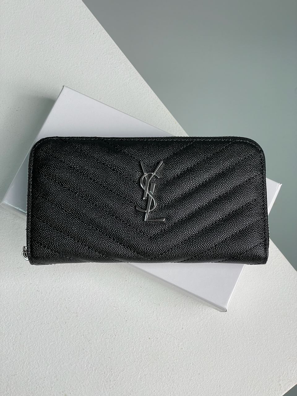 Saint Laurent Plain Leather Long Wallet Black/Silver1 / 16