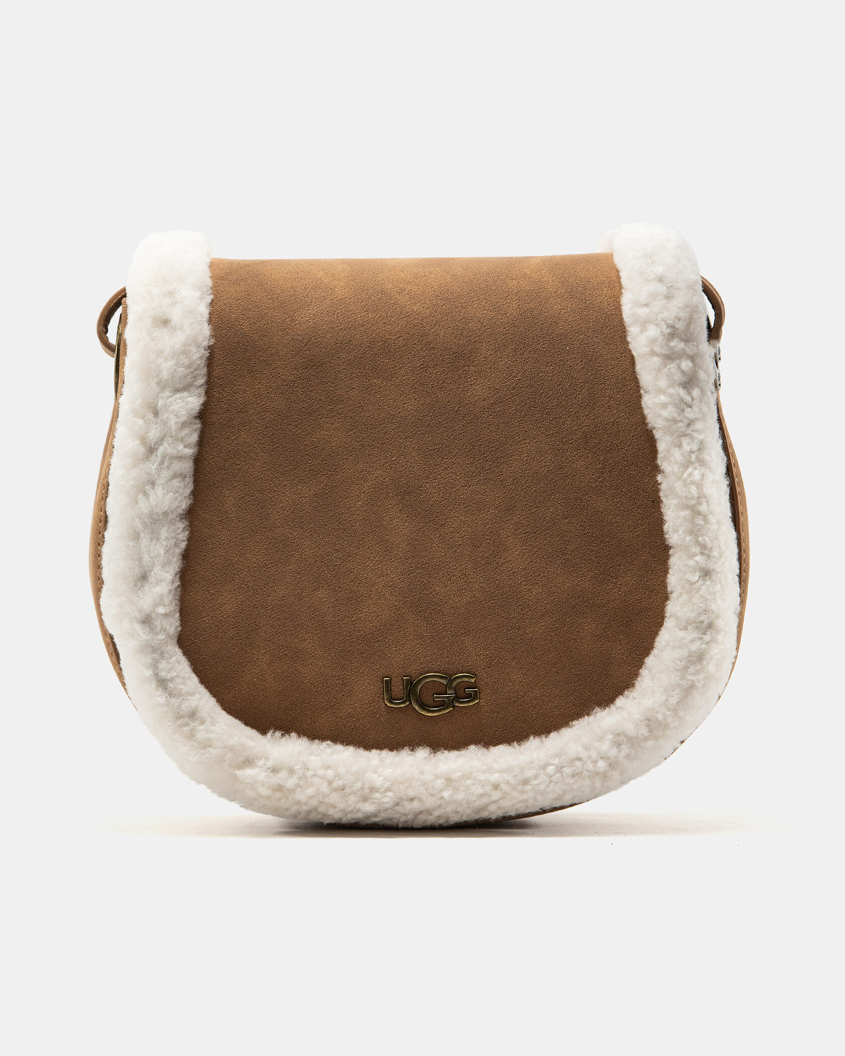 Розмір 21x18x8смМатеріал: Натуральна замшаФурнітура: Металева у бронзовому відтінкуРучки: Довгий регульований ремінець через плечеВідділення: Основне на магнітній застібці, всередині — кишеня для дрібницьОсобливість: Тепла та затишна сумка у фірмовому стилі UGG із хутряною обробкою — ідеальний аксесуар для осінньо-зимових образів